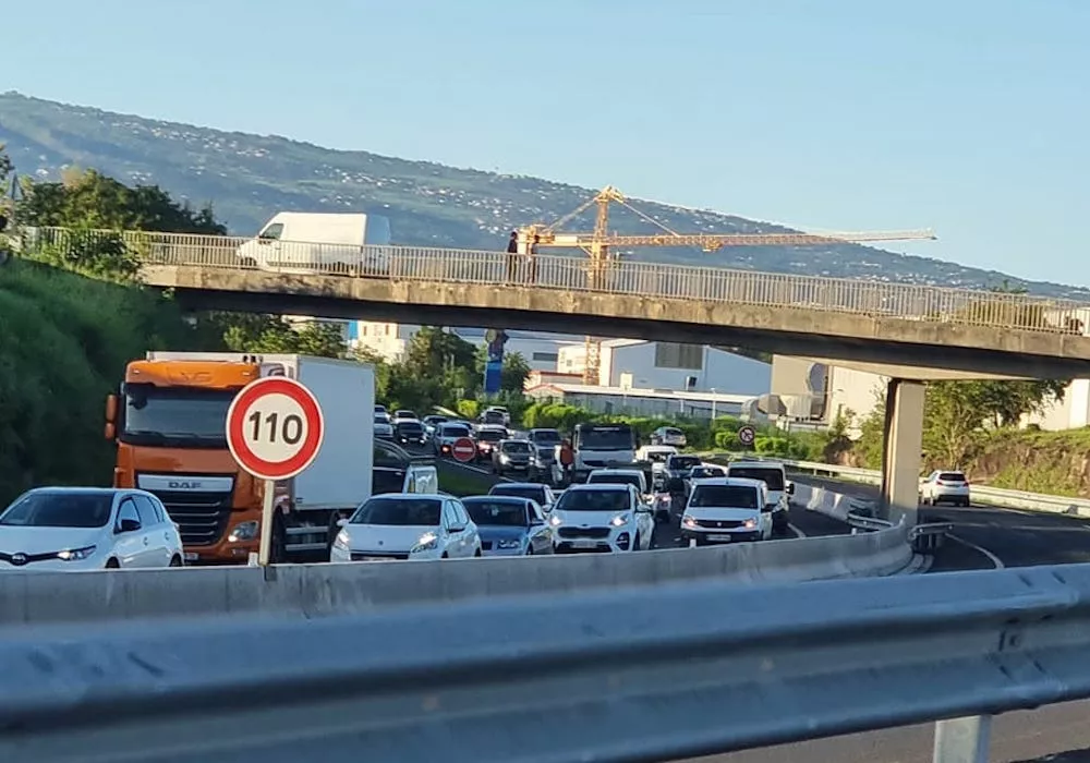 Conséquence : un sacré effet accordéon et un bouchon monstre de 10 kilomètres entre la Possession et le Nord de l’île.