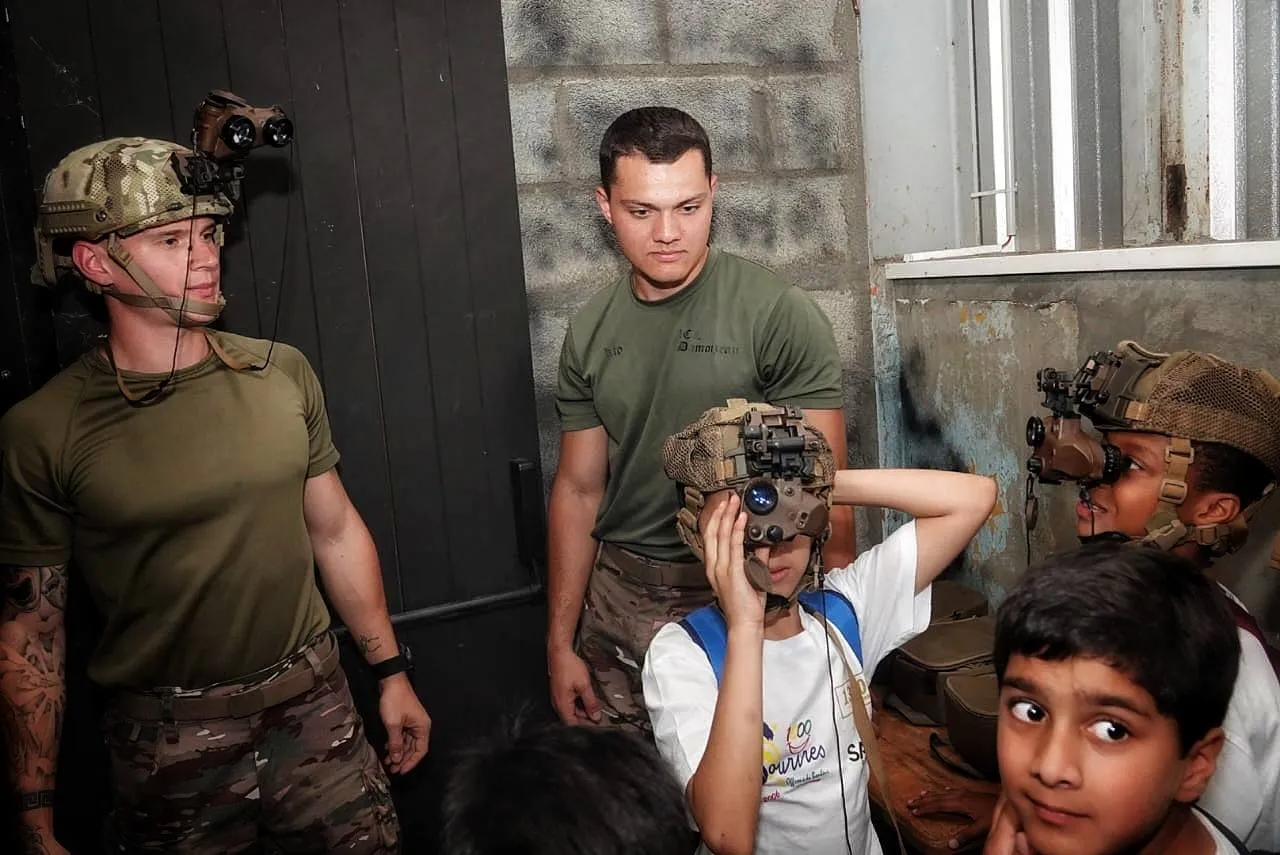 Les petits soldats en herbe ont également participé à un atelier vision nocturne, où, équipés de jumelles spéciales, ils devaient secourir une petite fille factice lors d’un exercice d’observation dans l’obscurité. « Je voyais tout en vert, je m’attendais pas à ça ! », raconte Mounir, 9 ans, fier d’avoir réussi la mission. Ils ont aussi découvert le véhicule VT4 et expérimenté un parcours commando, mêlant effort, entraide et bonne humeur.