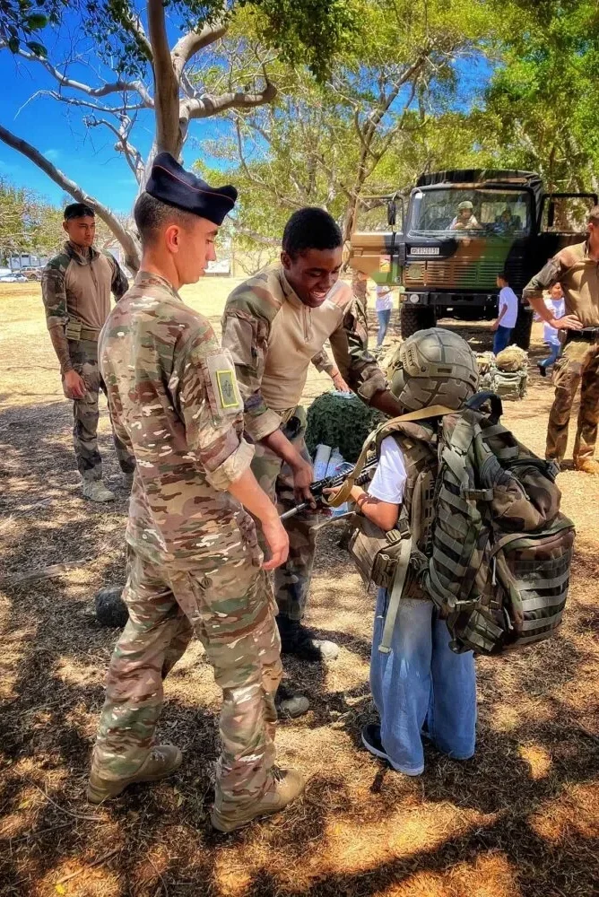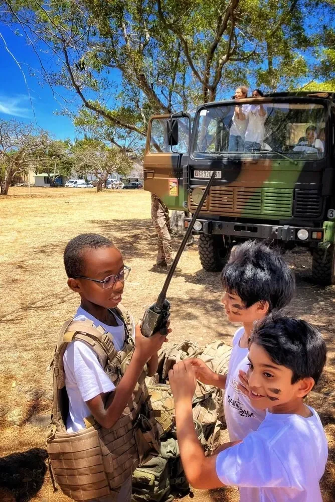 La Caserne Dupuis du 2e Régiment de Parachutistes d’Infanterie de Marine (RPIMa), à Pierrefonds, a accueilli une soixantaine de Very Important Marmailles (VIM) de l’Association 1000 Sourires, présidée par Ibrahim Ingar, pour une journée citoyenne. Les enfants ont eu le privilège de vivre une journée immersive, à la découverte du quotidien des militaires parachutistes.