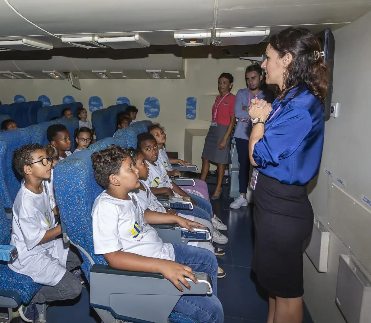 Pour clore cette riche matinée en beauté, les marmailles ont déjeuné à bord d’une reproduction de cabine d’avion au centre d’entraînement des PNC. Ils se croyaient en vol tant l’illusion était parfaite !