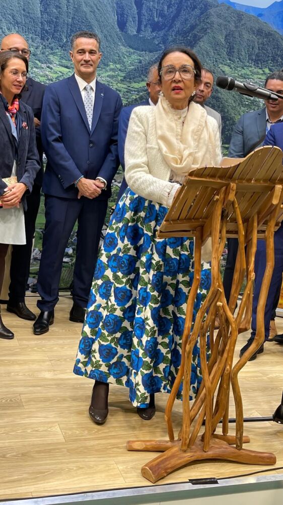 Ericka Bareigts, la maire de St-Denis : tout au loin, je vois, je vois… un objet en forme de pyramide inversée.