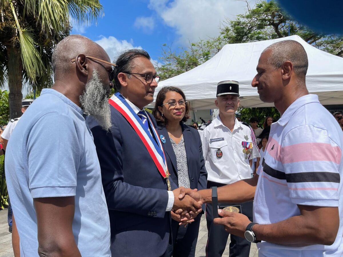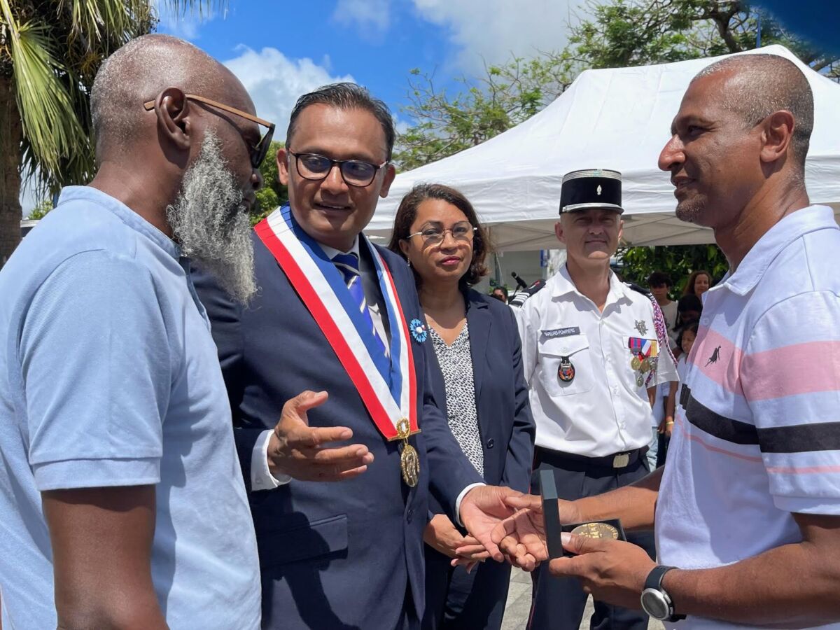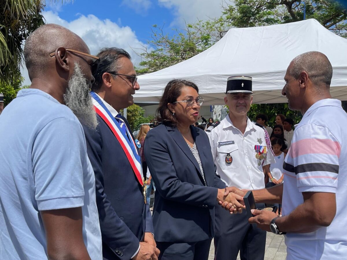 En ce 11 novembre 2024, lors de la cérémonie commémorative de l’Armistice, quatre temps forts ont animé cette matinée, dans la petite commune de Bras-Panon, plus précisément sur la Place Michel Debré. La municipalité, en étroite collaboration avec la Société des Membres de la Légion d’Honneur (SMLH) et l’association des Anciens Combattants et Militaires de Réserve de Bras-Panon, a d’abord procédé à la remise de la médaille de la Ville à Bernard Salaï pour son courage salutaire. Le maire de Bras-Panon Jeannick Atchapa, en présence de la vice-présidente du Département et présidente du SDIS, Sophie Arzal, ainsi que d’autres personnalités civiles et militaires, a décerné à Bernard Salaï la médaille de la Ville pour son acte de bravoure lors de la journée paralympique du 24 août dernier. Le pompier, présent sur-place à titre bénévole, avait permis le sauvetage d’un Panonnais, victime d’un malaise.