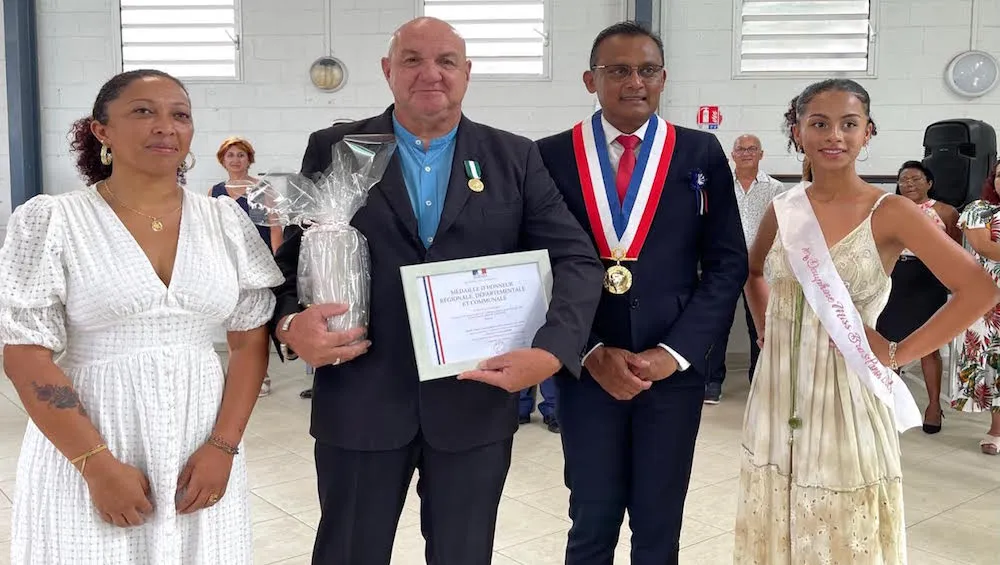 De gauche à droite : le 1er adjoint Thierry Henriette, Marcel Rouget (Or), le maire Jeannick Atchapa et Yaël Imouza.