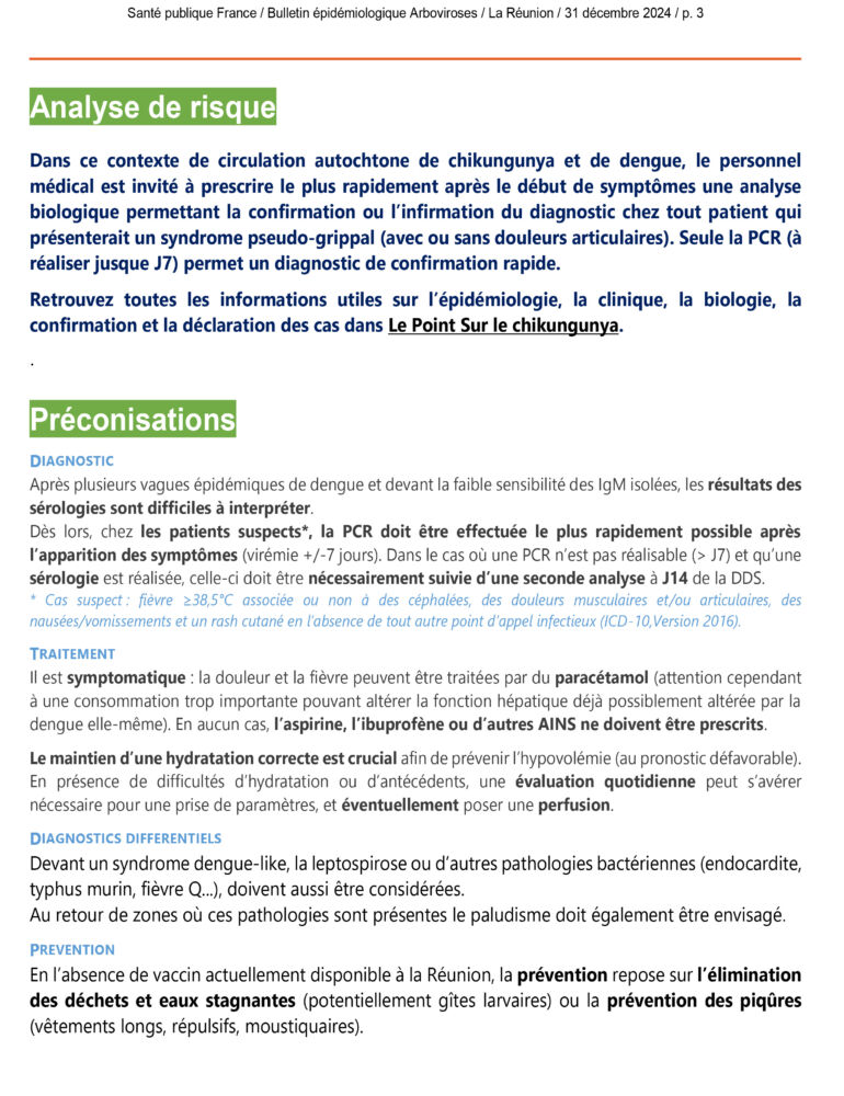 Et quel serait selon vous l’intérêt de sous évaluer les cas de dengue et chikungunya, alors que cela permet de rappeler à chacun d’entre nous d’être vigilant et les gestes à faire pour éviter la propagation ?