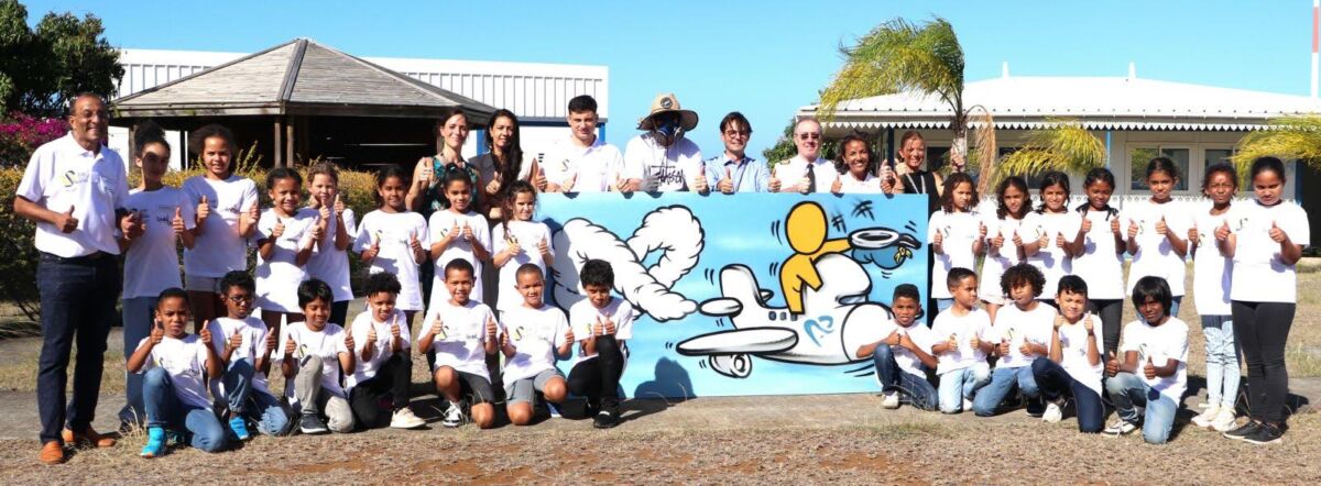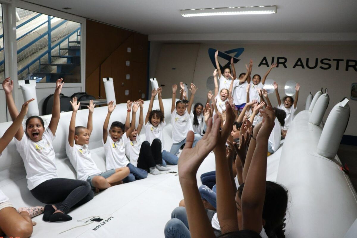 Les enfants ont été accueillis en VIM (Very Important Marmailles) par le président du Directoire d’Air Austral, Hugues Marchessaux, des hôtesses de l’air et le pilote Yann Nogue.