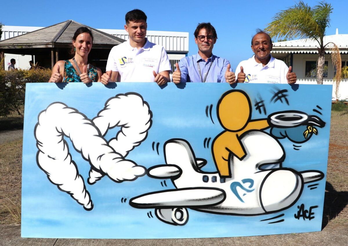 Au programme de cette belle après-midi : la découverte d’une maquette d’un avion grandeur nature et des métiers d’hôtesses de l’air et de pilote, un atelier de graff avec l’ambassadeur d’Air Austral et papa des gouzous Jace ainsi que le tirage au sort symbolique du 13 000 ème enfant parrainé. Et c’est le nouveau parrain de l’Association Louis Bielle-Biarrey et la marraine historique Marie-Alice Sinaman qui ont réalisé le tirage au sort !
