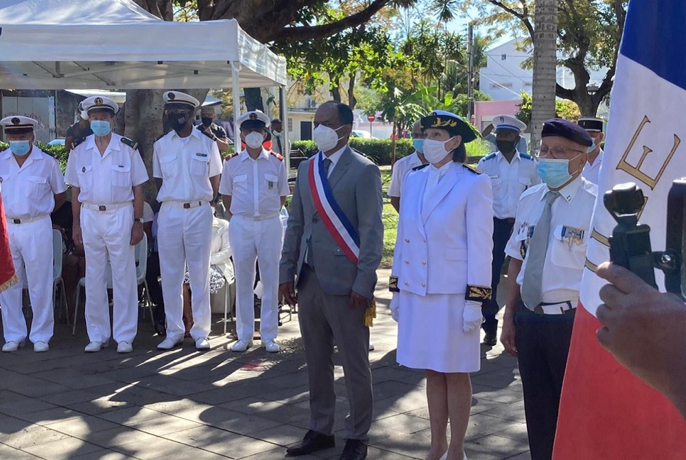 A Saint-Paul, la cérémonie de commémoration adaptée au protocole sanitaire s’est déroulée en présence de la Sous-Préfète, Sylvie CENDRE, de Jude BARET, président de la section locale des Anciens combattants et des Victimes de Guerre et des enfants du Conseil communal des Enfants et des Jeunes.