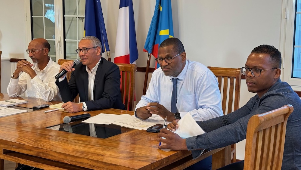 De gauche à droite : Ridwane Issa, 1er adjoint au maire de Saint-Benoit et vice-président de la Cirest; Patrice Selly, maire de Saint-Benoit et président de la Cirest; Jeannick Atchapa, maire de Bras-Panon et vice-président de la Cirest