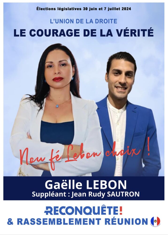 Gaëlle Lebon, qui s’était présentée avec l’étiquette Rassemblement National, aux législatives de juin 2022 dans la 1ère circonscription, avait totalisé un peu plus de 13% des suffrages. Mais depuis, elle s’est fâchée avec Johnny Payet, patron du RN local. Elle a créé son propre parti, le Rassemblement Réunionnais (RR). Pour les prochaines législatives, elle va se présenter sous les couleurs de « Reconquête ! », le parti d’Eric Zemmour.