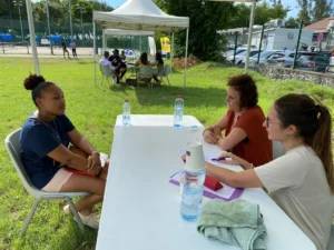 - La première partie s’est consacrée aux initiations de tennis entre recruteurs et demandeurs d’emploi