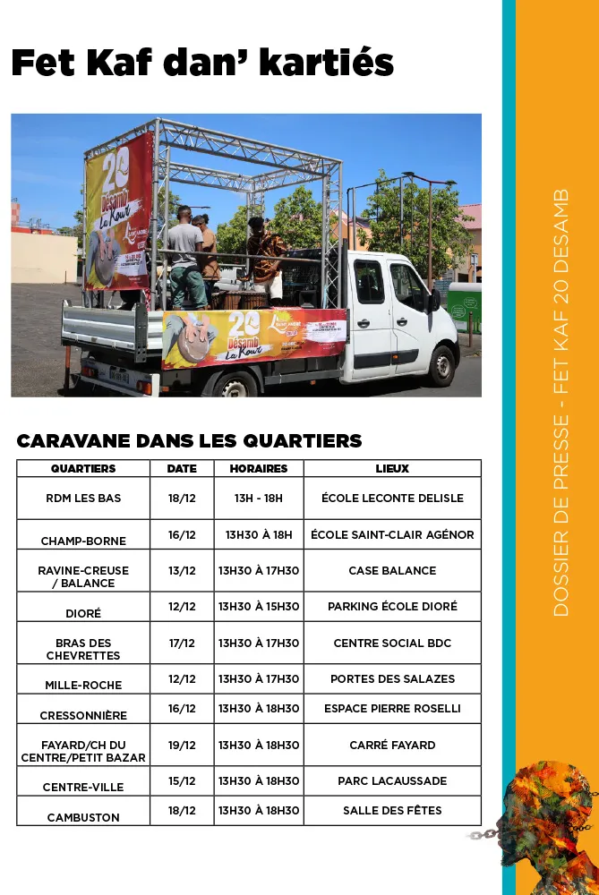 Depuis le 12 décembre, les festivités battent leur plein dans les quartiers, témoignant de l’engagement de toute une ville pour honorer cette journée historique : ateliers, expositions, Karavane Maloya, ronds maloya…