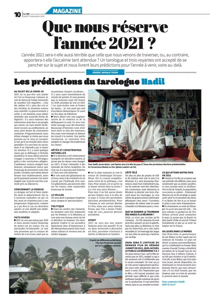 Il est coutume en fin d’année de consulter un.e voyant.e pour permettre d’y voir plus clair sur la nouvelle année à venir. Dans un dossier du Journal de l’Ile paru le 30 décembre 2020, plusieurs voyants locaux avaient apporté leurs prédictions sur l’année 2021, qui se sont révélées plutôt justes.