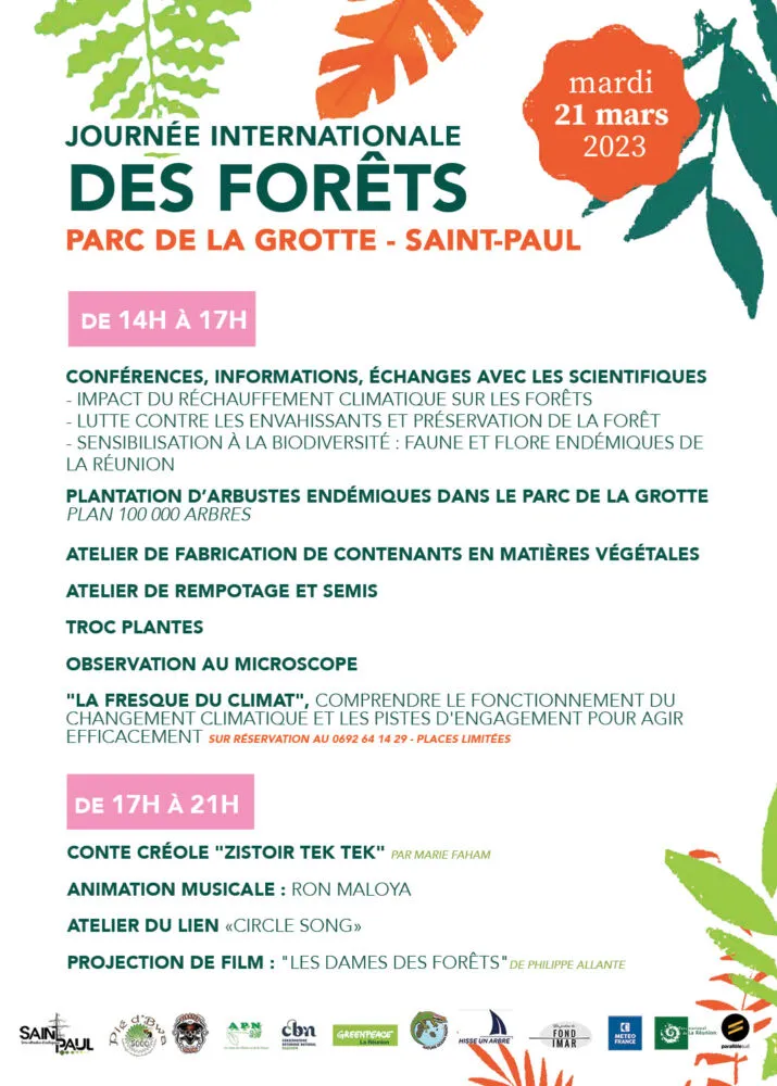 Ce mardi 21 mars 2023 de 14h à 21h, la Ville de Saint-Paul célèbre la Journée Internationale des Forêts au Parc de la Grotte du Peuplement.