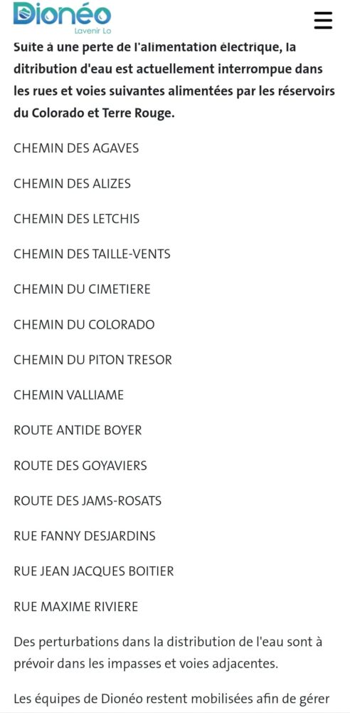 Les équipes de Runéo mettent tout en oeuvre pour réparer l’armoire et devraient pouvoir remettre l’eau en service dans la journée de mardi à mercredi de façon