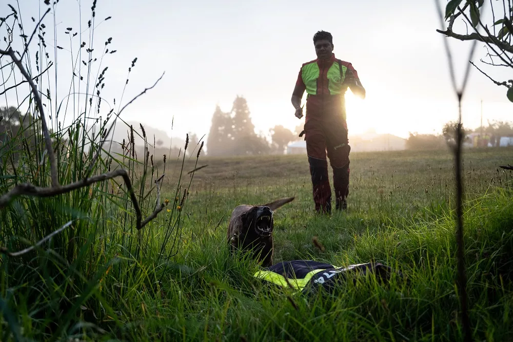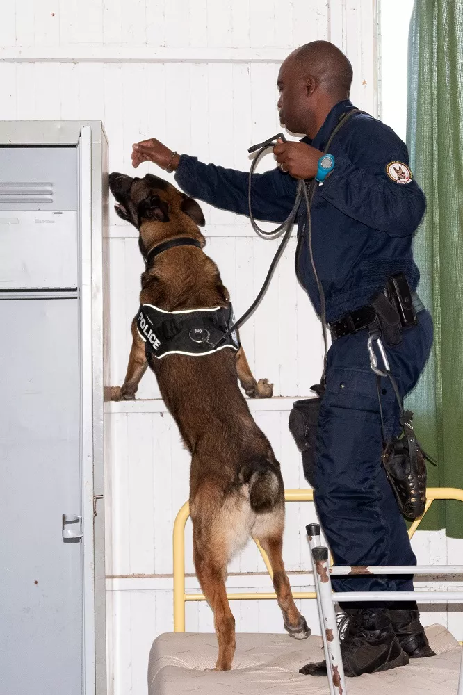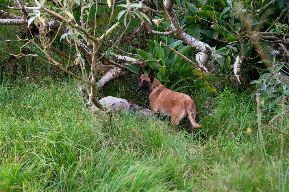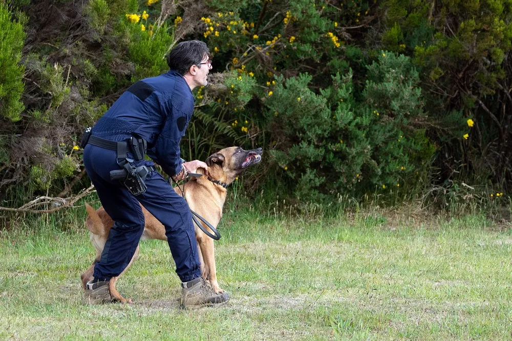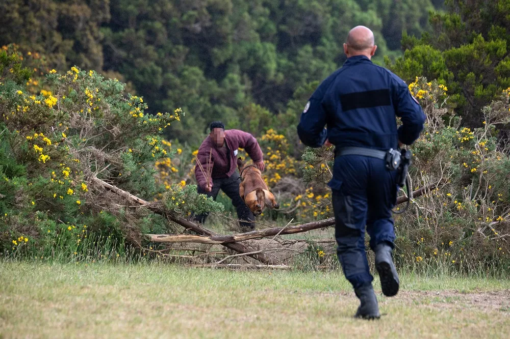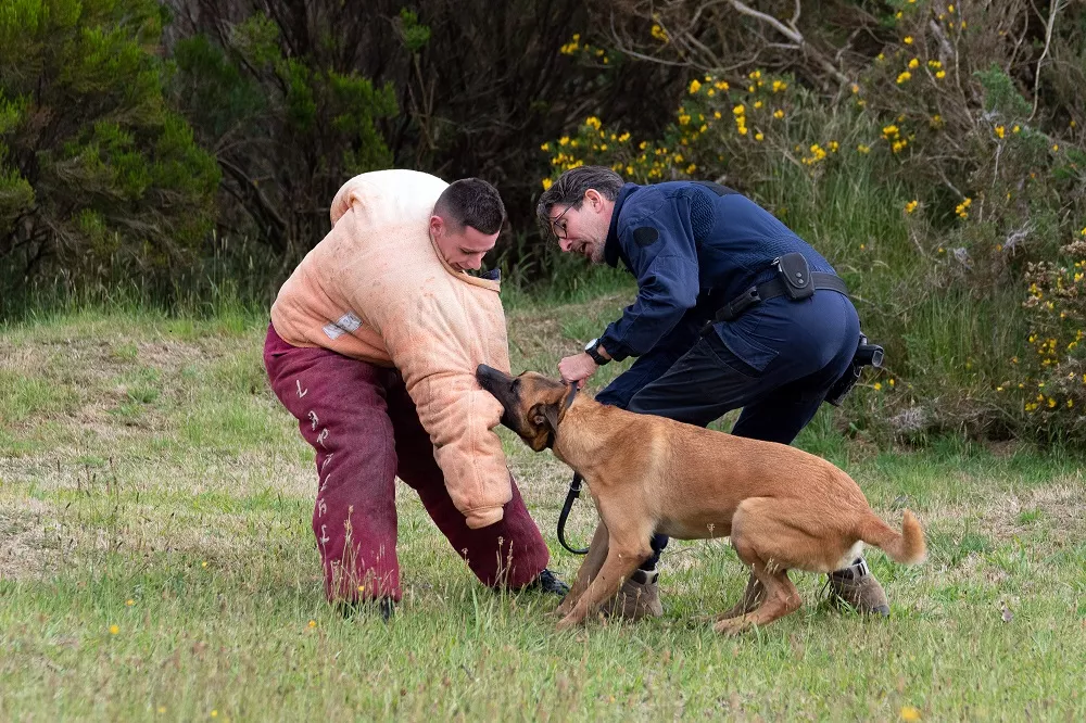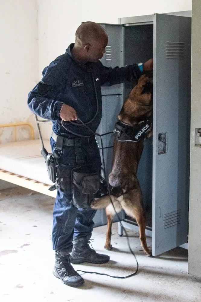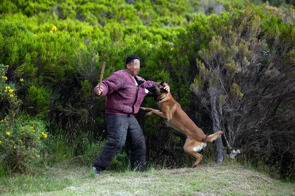 L’entraînement était axé autour d’ateliers de travail communs sur les thèmes : mordant/frappe muselée, recherche de stupéfiants, recherche de personnes, discipline-obéissance/mordant. Les maîtres de chiens, conducteurs et hommes d’attaque ont réalisé leurs évolutions sur l’ensemble du camp Paoli, exploitant les obstacles naturels et les grands espaces pour placer les malinois et bergers hollandais hors de leur zone de confort. Tout au long de l’après-midi, les différentes mises en situation ont permis d’explorer les méthodes de travail propres aux spécialités de chacun (pompiers : recherche de personnes disparues, armée de Terre et police : attaque/mordant, police : recherche de stupéfiants/billets, etc), et ainsi d’enrichir les connaissances mutuelles.