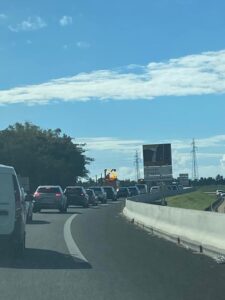 Deux véhicules sont entrés en collision près de la station Engen de la Grande Montée. Une personne âgée est coincée dans son véhicule et est en train d’être prise en charge. La circulation est arrêtée. Évitez la zone si possible.