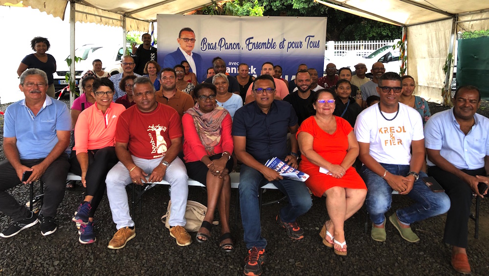 Ludovic Alamélou (juste derrière Jeannick Atchapa) lors de la campagne des municipales de 2020 à Bras-Panon. (Crédit photos : YM)