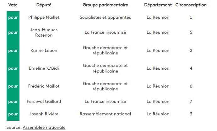 À noter que l’ensemble des élus réunionnais ont voté en faveur de cette motion, marquant ainsi une position unanime contre l’exécutif.