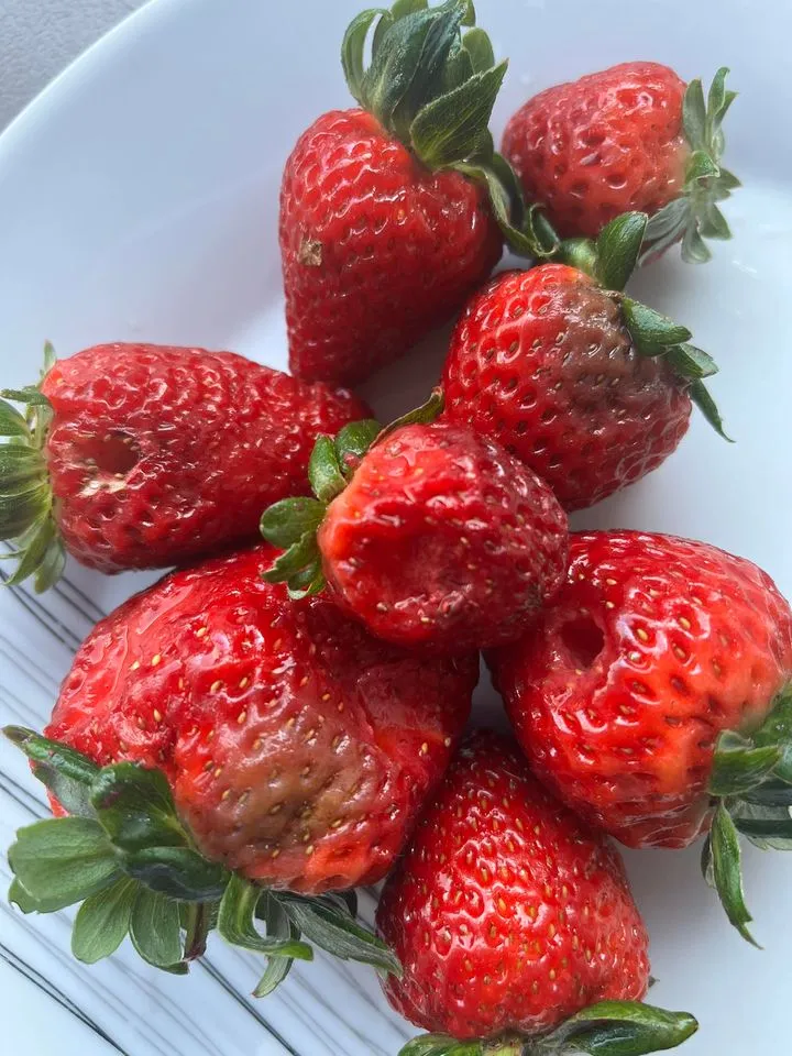 » Ce matin j’étais au marché forain du chaudron avec mon fils de 3 ans. Il me réclame des fraises alors pour lui faire plaisir même si je trouve le prix de la barquette un peu cher j’achète. 3€ la petite barquette et quand j’arrive à la maison regarder l’état des fraises en questions ! C’est incroyable des voleurs ! »