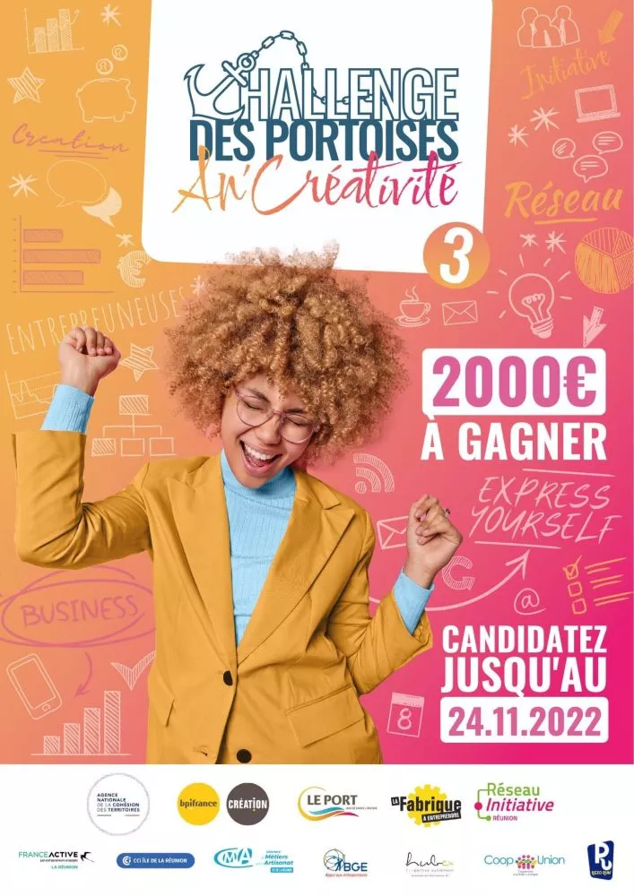 Entrepreneuses ou futures entrepreneuses portoises, ce challenge est pour vous ! Inscrivez-vous https://cutt.ly/DNLTDuu au Challenge des Portoises an créativité, jusqu’au 24 novembre. Une initiative de la Fabrique à Entreprendre avec le soutien de nombreux partenaires dont la Ville du Port.