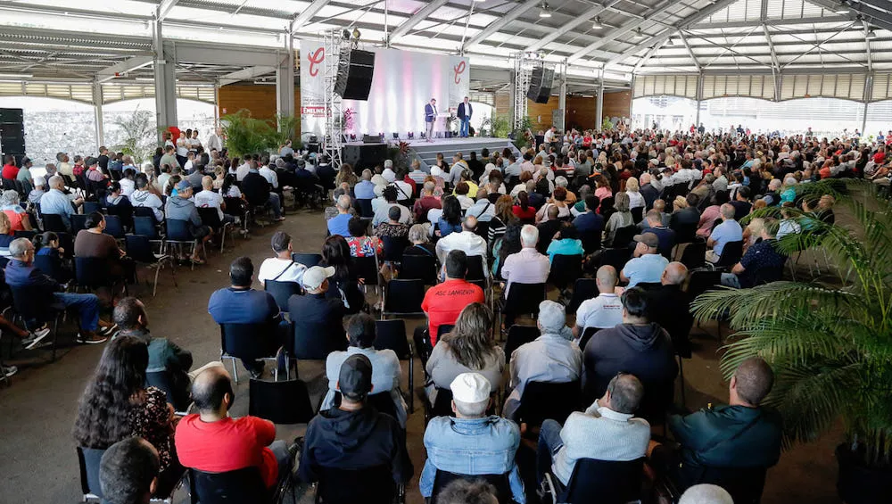Emeline K/BIDI, candidate aux législatives dans la 4ème circonscription et Jean-Bernard Maratchia, son suppléant, ont tenu au grand meeting de campagne ce dimanche 5 juin sous la Halle François Mitterrand à Saint-Joseph.