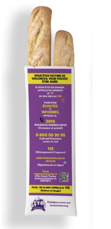 Après avoir lancé une cagnotte, le collectif NousToutes va distribuer 615 000 sacs à pain dans les boulangeries. Cette opération « baguettes de pain », inspirée d’une initiative de la maire de Noisy-le-Sec (93), vise à prévenir et lutter contre les violences conjugales.