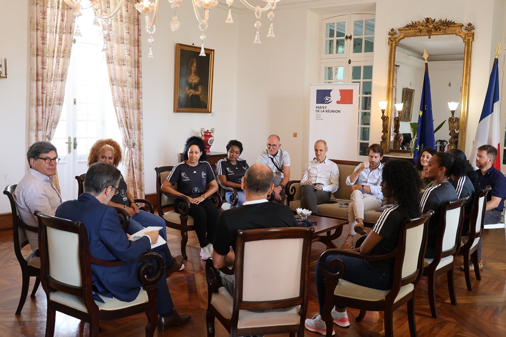 Ce matin, l’association a été accueillie par Jérôme Filippini, préfet de La Réunion, à l’hôtel de la préfecture. Ces femmes vont vivre une aventure incroyable, et nous leur souhaitons le meilleur à Paris 2024 !