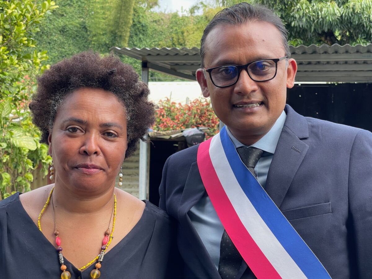 Le maire de Bras-Panon, Jeannick Atchapa et Marie-Andrée Damour, l’adjointe déléguée à l’Etat-Civil.