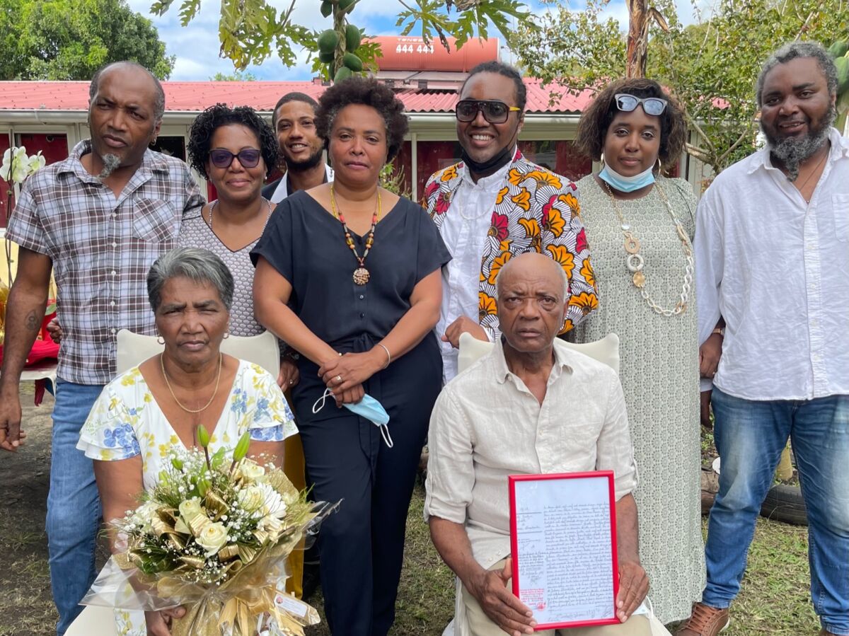Tout est écrit noir sur blanc dans l’acte de mariage que l’actuel maire, Jeannick Atchapa, a remis ce matin aux époux Araste. Accompagné de Marie-Andrée, son adjointe déléguée à l’Etat-Civil, Jeannick Atchapa a tenu a célébrer « cet instant magique » avec Macoq et son épouse, tous deux aujourd’hui âgés de 69 ans.