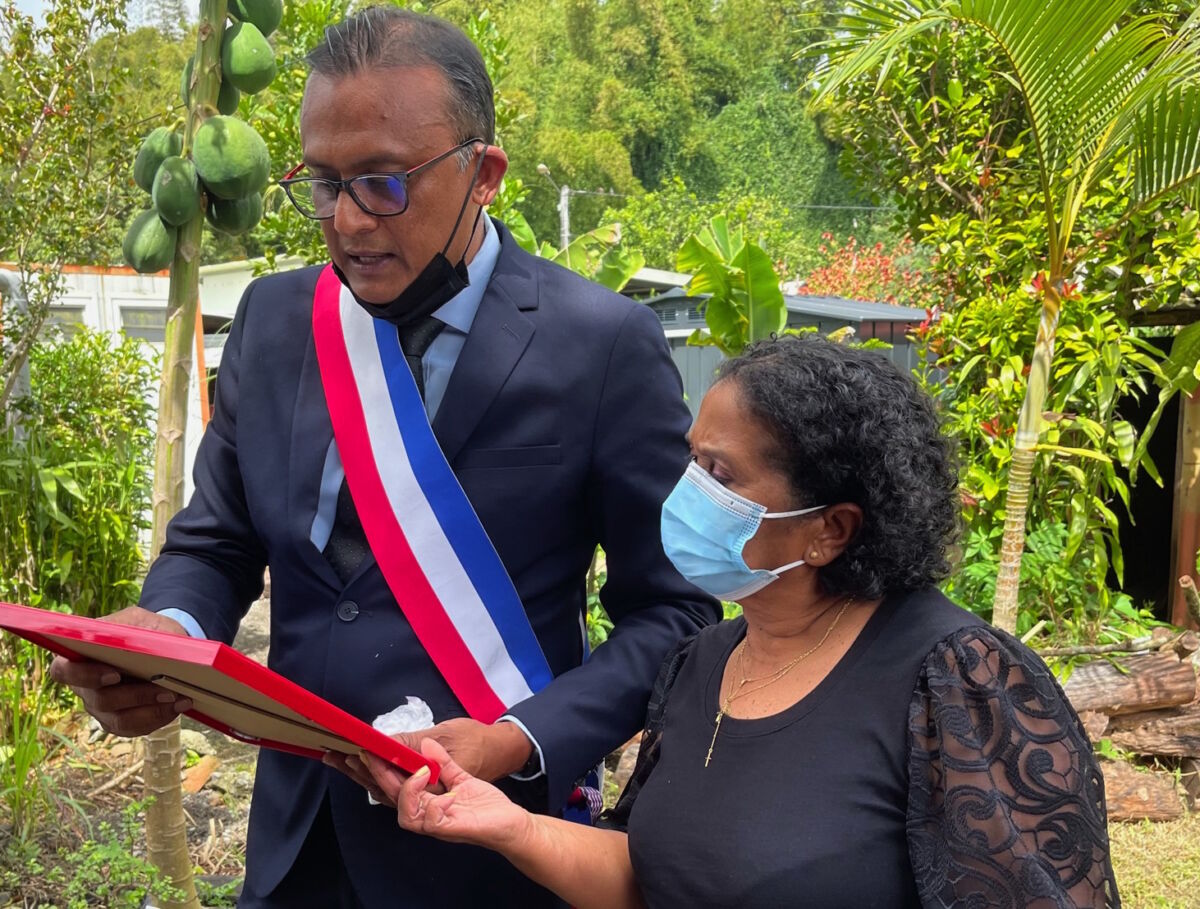 Jocelyne Araste en compagnie du maire de Bras-Panon