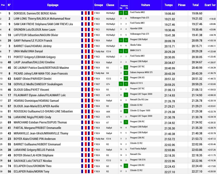 Vous l’entendiez sur notre antenne, cette 53è édition a pris fin vers 16h. Et l’on apprenait que le classement avait brusquement changé après l’arrivée. En effet, suite à une réclamation, Damien Dorseuil, pourtant arrivé en tête, a reçu une pénalité de 3 secondes après la pesée de sa voiture, jugée trop légère ce matin.
