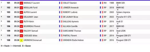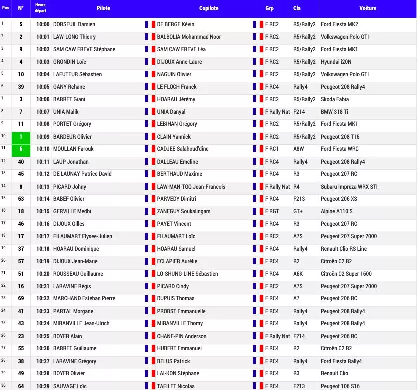 Voici l’ordre et les heures des départs des équipages :