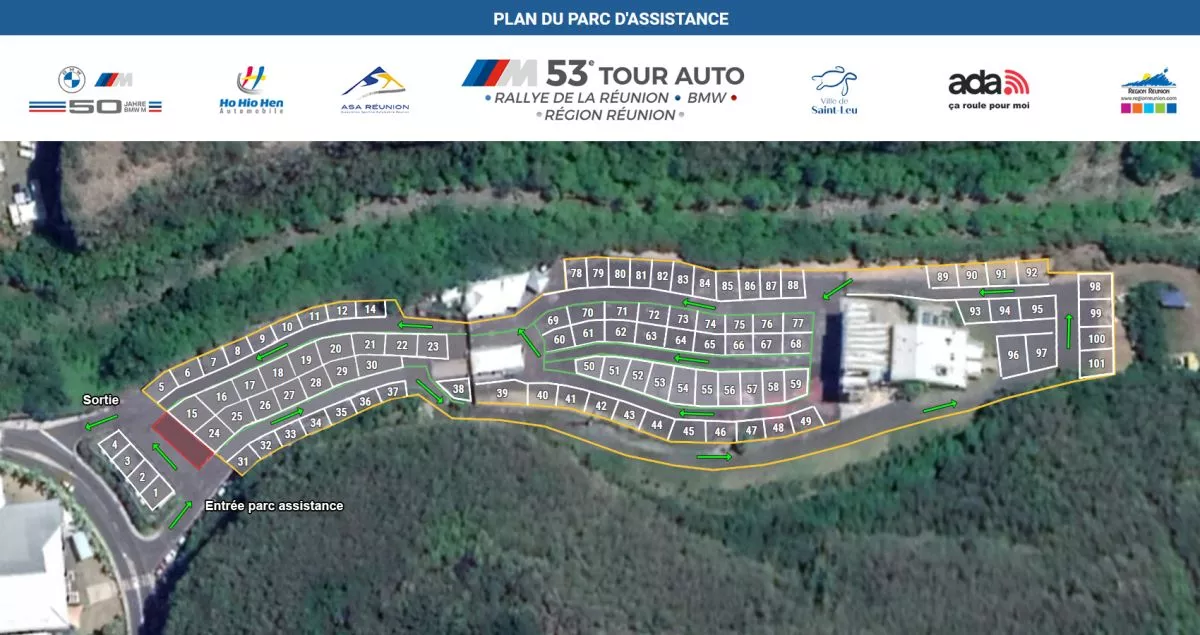 Compte tenu de la relative exiguïté de la Ravine Saint Leu, chaque concurrent disposera d’un espace de 48m² (6mX8m). Dans un soucis d’équité, les concurrents effectueront le même parcours entrée/sortie de ce parc d’assistance. Le sens de circulation unique se fera à travers de larges allées d’une largeur minimale de