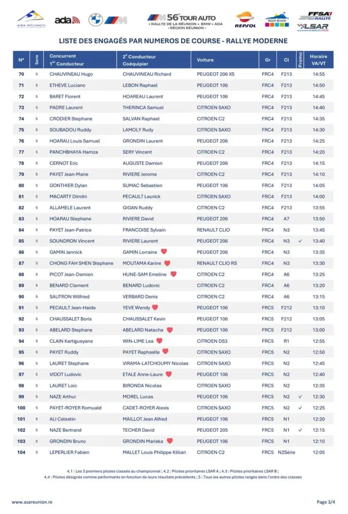 Cette édition, très attendue des amateurs de sport automobile, se déroulera du vendredi 25 au dimanche 27 juillet, avec un départ et une arrivée au Barachois, à Saint-Denis.