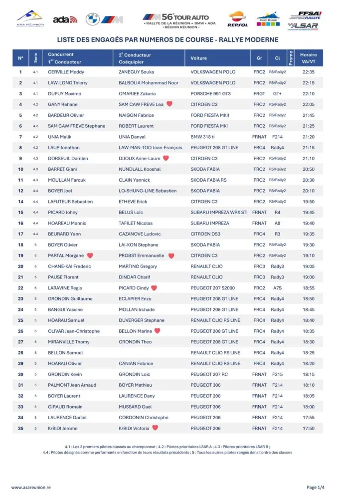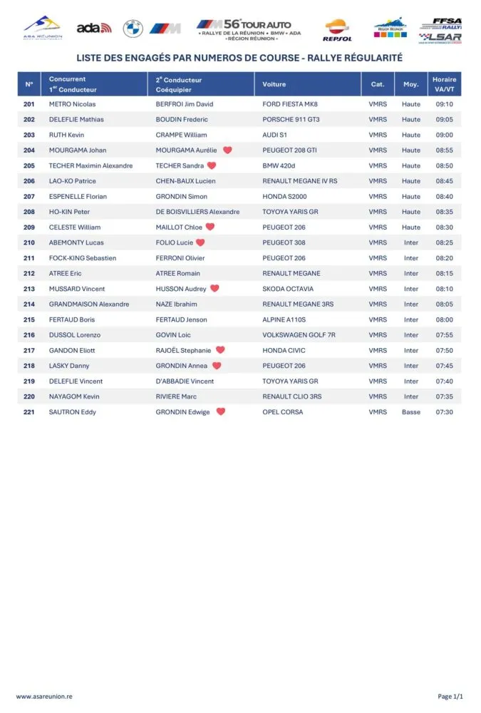 Le coup d’envoi sera donné vendredi à 13h20, depuis le front de mer du Barachois. Pendant trois jours, les concurrents s’affronteront sur des spéciales techniques et spectaculaires, entre bitume, virages serrés et vues imprenables sur les reliefs de l’île. L’arrivée est prévue dimanche à 16h20, toujours à Saint-Denis, pour un final qui s’annonce haut en émotions.