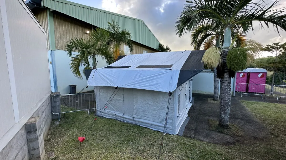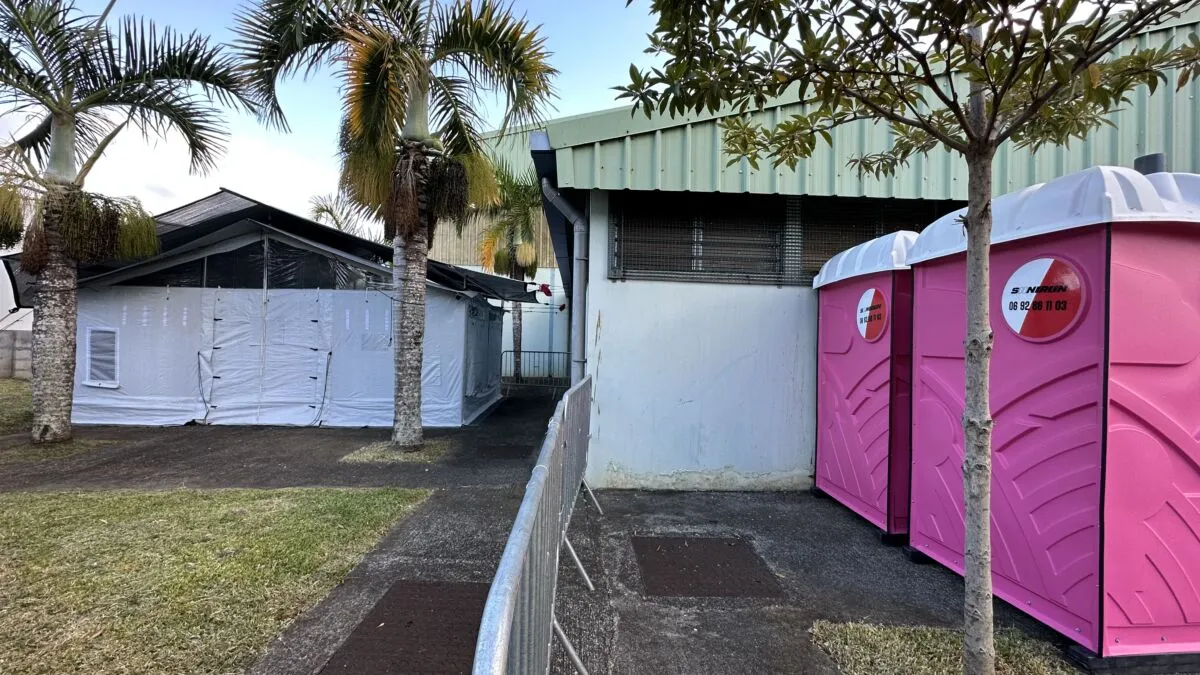 Les services de l’État s’étaient organisés pour aménager en urgence une zone d’attente permettant d’accueillir de façon adaptée un nombre plus important de personnes que celui que peut héberger la zone d’attente habituelle. Sur le principe des centres d’hébergement en cas de situation de crise, un gymnase situé sur la commune de Sainte-Marie a été réquisitionné et aménagé, quartier du Verger.