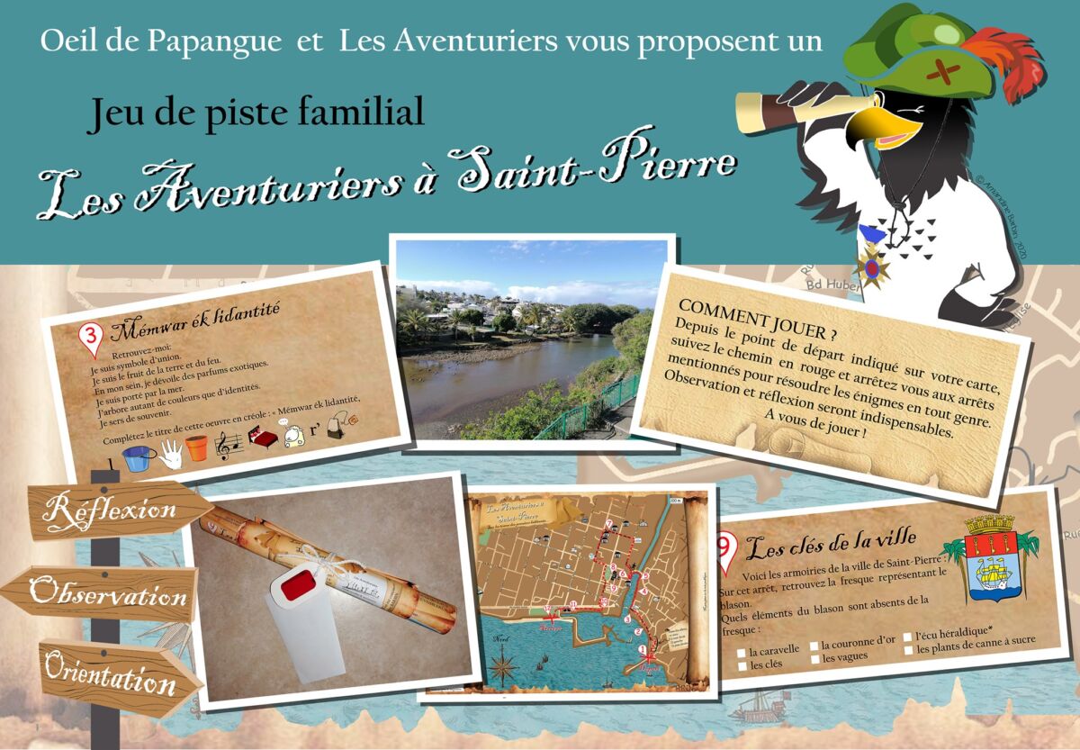 « Les Aventuriers à Saint-Pierre » est un jeu de piste en autonomie réalisé pour les ados et adultes. Il reste accessible dès 6 ans avec un lecteur. Le jeu vous entraîne dans les environs de la Rivière d’Abord et du front de mer de la ville. L’activité se déroule à votre rythme et vous explorerez le vieux Saint-Pierre à travers une douzaine d’arrêts mettant en avant l’histoire, les légendes & anecdotes de la commune.