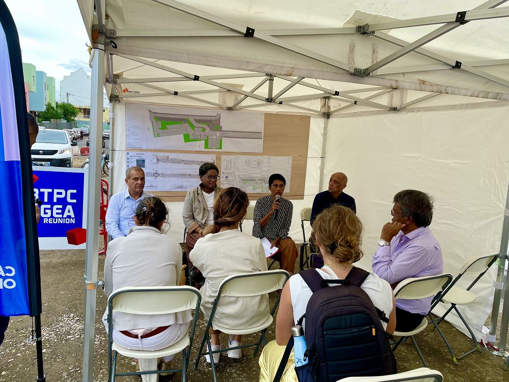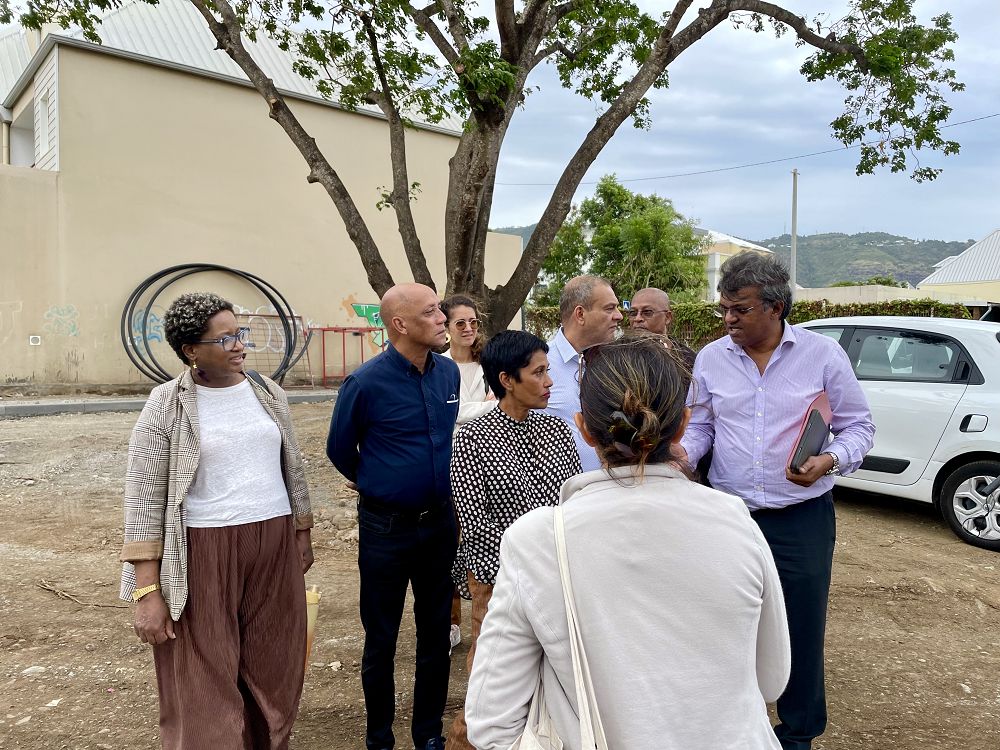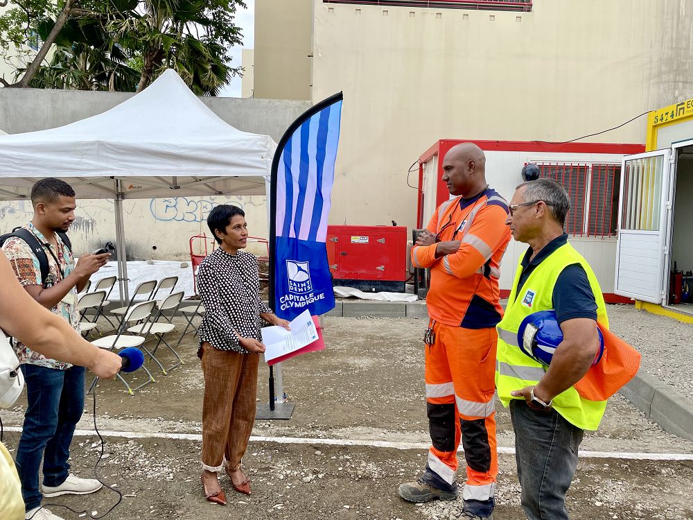 Ericka Bareigts, maire de Saint-Denis, en compagnie de Nouria Raha, élue du secteur de Marcadet, Yassine Mangrolia, élu délégué à la réglementation de la circulation et Jacques Lowinski, élu délégué à l’aménagement ont eu le plaisir de présenter les travaux de création du futur parking Chambly lors d’une conférence de presse tenue ce mardi 11 juin.