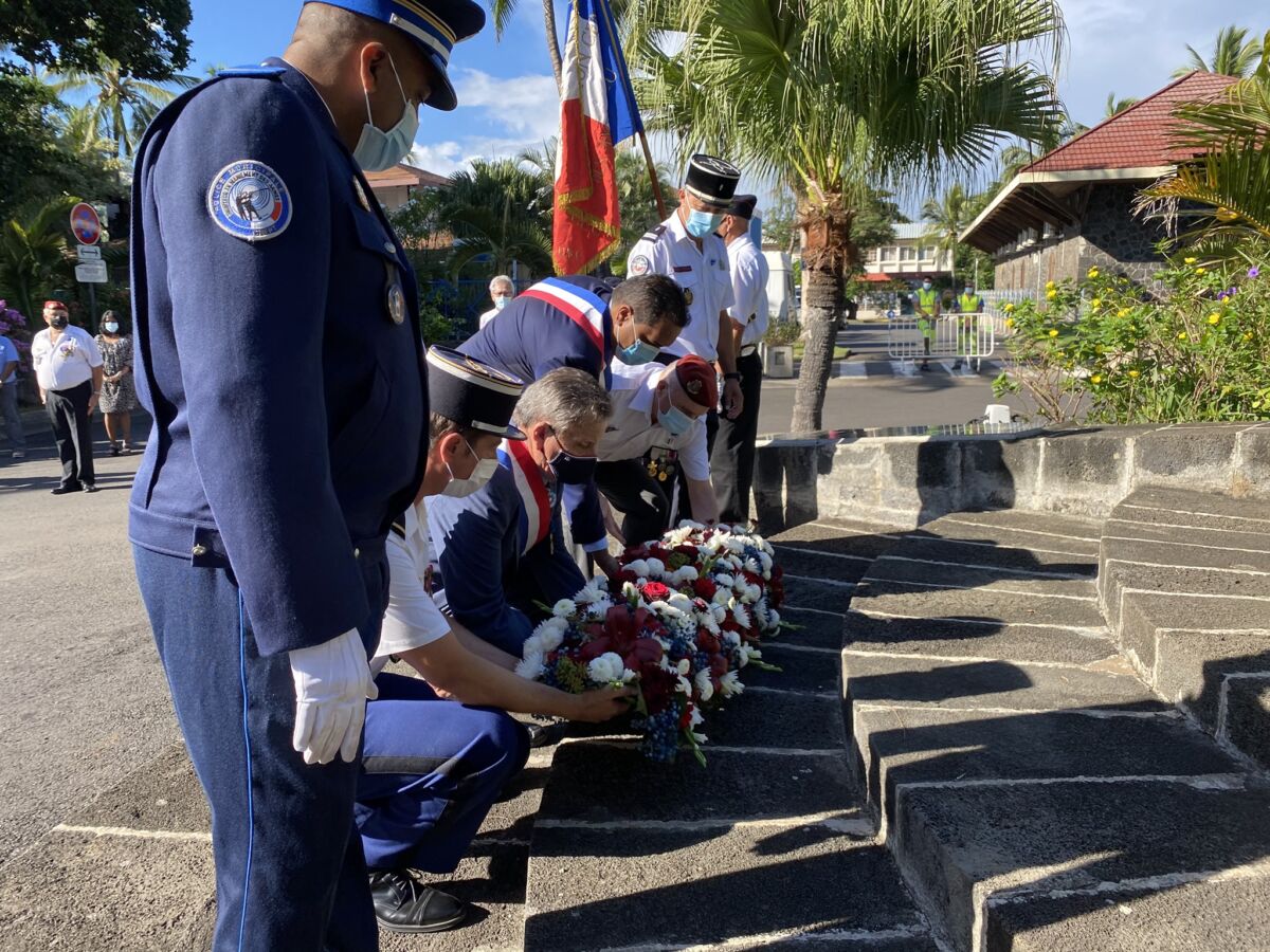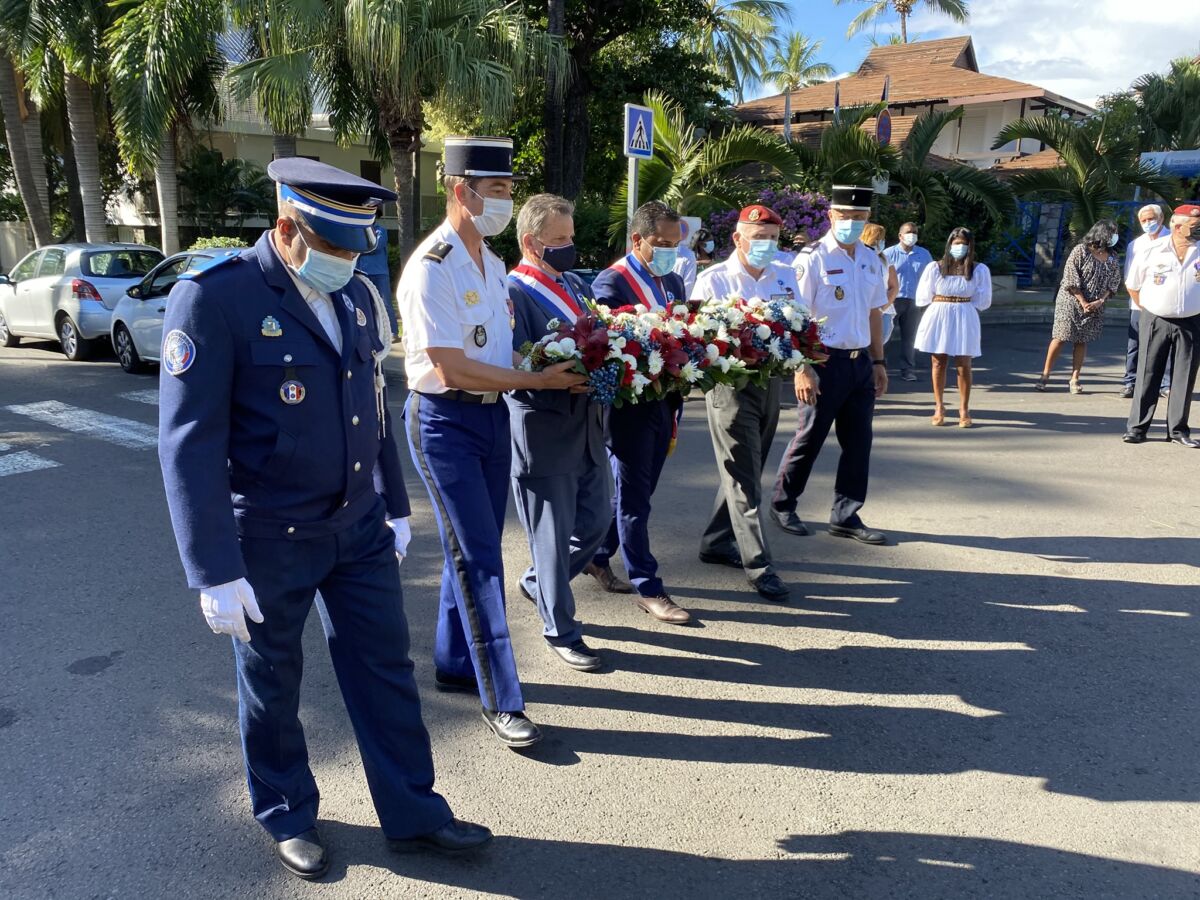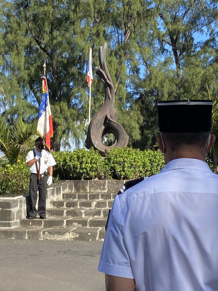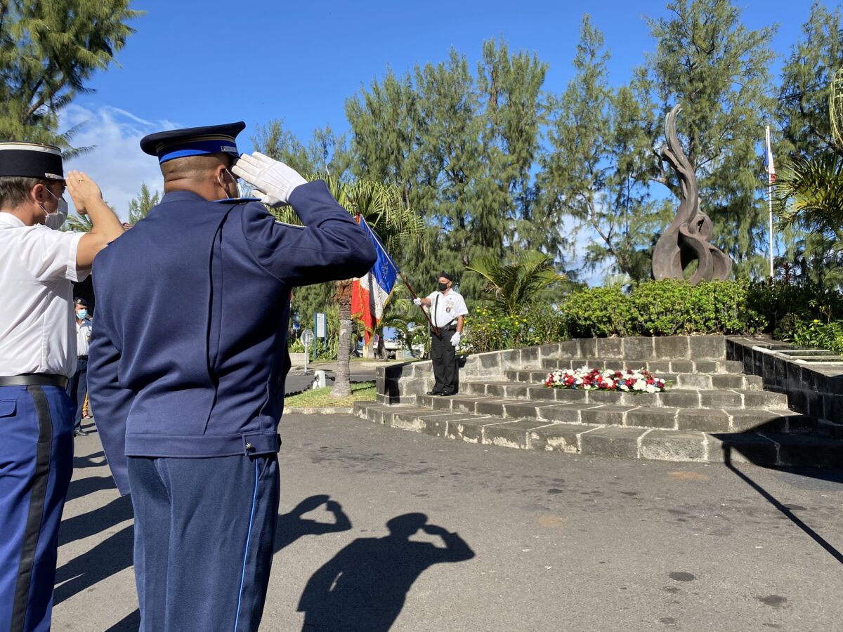 de l’Adjudant Schuft de la brigade de gendarmerie de Saint-Leu ainsi que du capitaine Lefèvre du service d’incendie et de secours et de Jean-Noël Ellaya chef de la police municipale, ont salué la mémoire des Saint-Leusiens et de tous les soldats français qui ont été mobilisés lors de la seconde guerre mondiale.
