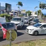 • Première opération escargot sur la 4 voies direction Nord, on roule à 10 km depuis Carrefour vers St Denis. Les véhicules circulent à 10 km/h. La tête du cortège est déjà arrivée à 7H au Grand Prado.