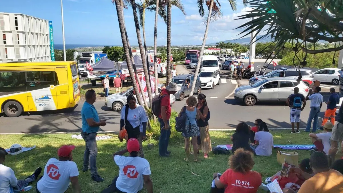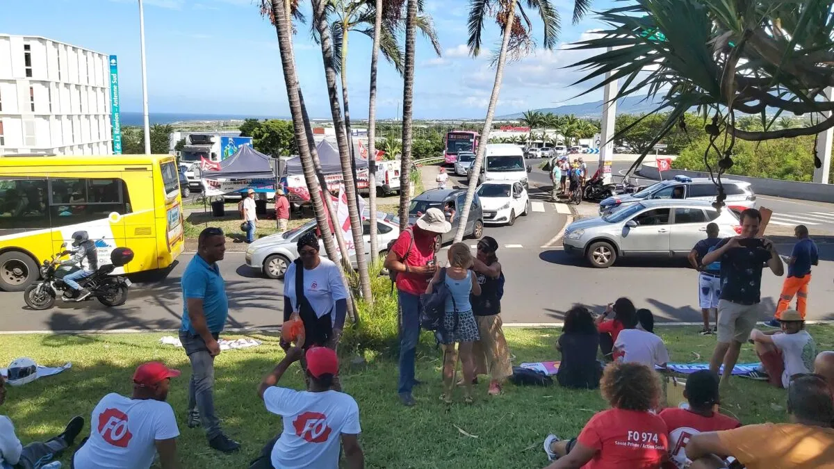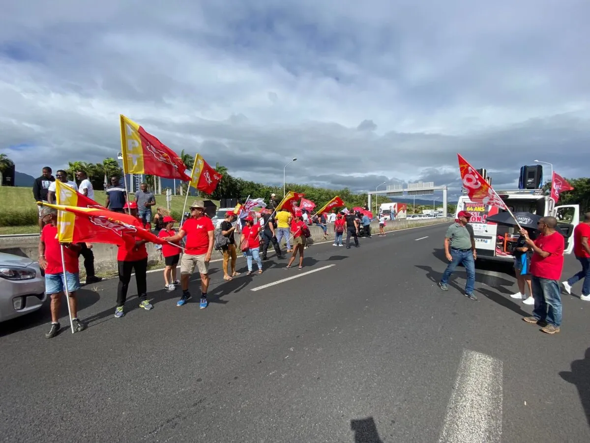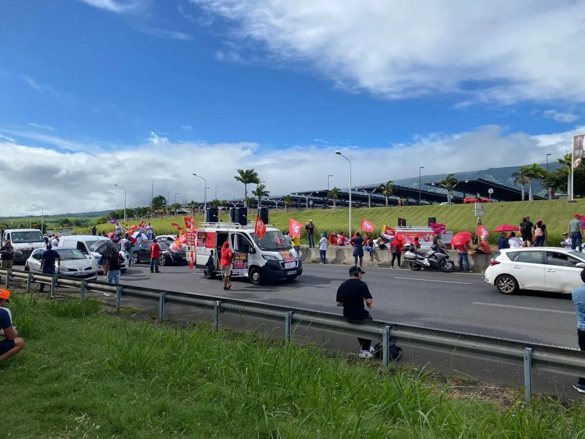 9h20 :  Les manifestants installent un barrage bloquant sur les 4 voies, à hauteur de Gillot, dans le sens Saint-Denis/Sainte-Marie.