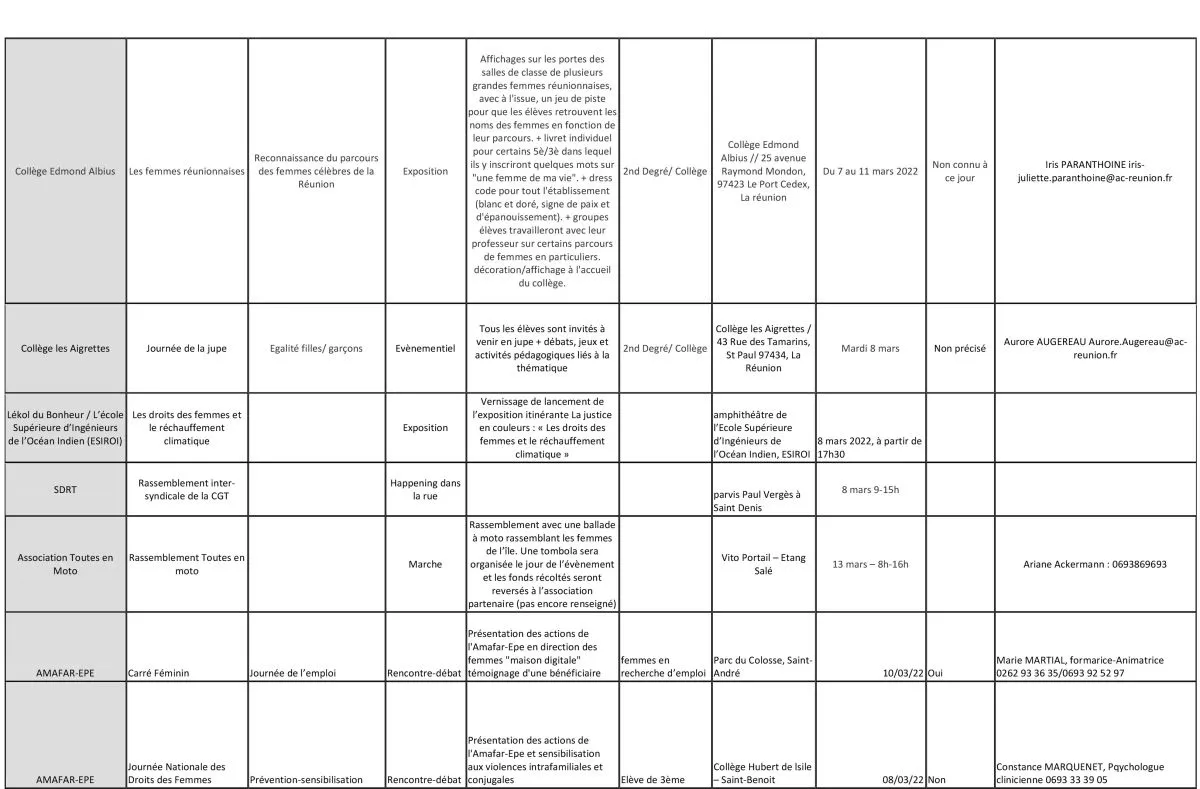 Manifestations du 8 mars 2022 à La Réunion-13 par La Rédaction 8 mars 2022 1 min de lecture Ne manquez pas toute l’actualité de La Réunion ! Abonnez-vous à la newsletter de Free Dom ! Valider Partager Facebook Twitter Pinterest Linkedin Whatsapp Reddit Email La Rédaction Laisser un commentaire Annuler la réponseYour email address will not be published. Enregistrer mon nom, mon e-mail et mon site dans le navigateur pour mon prochain commentaire. Current ye@r * Leave this field empty Articles récents... Jeudi 1ᵉʳ janvier 2026 – Météo, éphéméride et horoscope du jour Mercredi 31 décembre 2025 – Météo, éphéméride et horoscope du jour Hommage à Johnny Hallyday sur Free Dom 2 ce 5 décembre Mardi 30 décembre 2025 – Météo, éphéméride et horoscope du jour Saint-Joseph : découverte de 2337 plants de cannabis, arrestation de 2 individus Point sur le réseau routier départemental, 29 décembre à 16H30 Suicide sur le pont de la Rivière d’Abord : importante mobilisation des secours et des forces de l’ordre Radier submergé à Ilet Furcy : la route de Cilaos fermée à la circulation cette nuit Fortes pluies : appel à la plus grande prudence à Saint-Paul Saint-Gilles-les-Bains : une route impraticable, les riverains montent au créneau (VIDEOS)