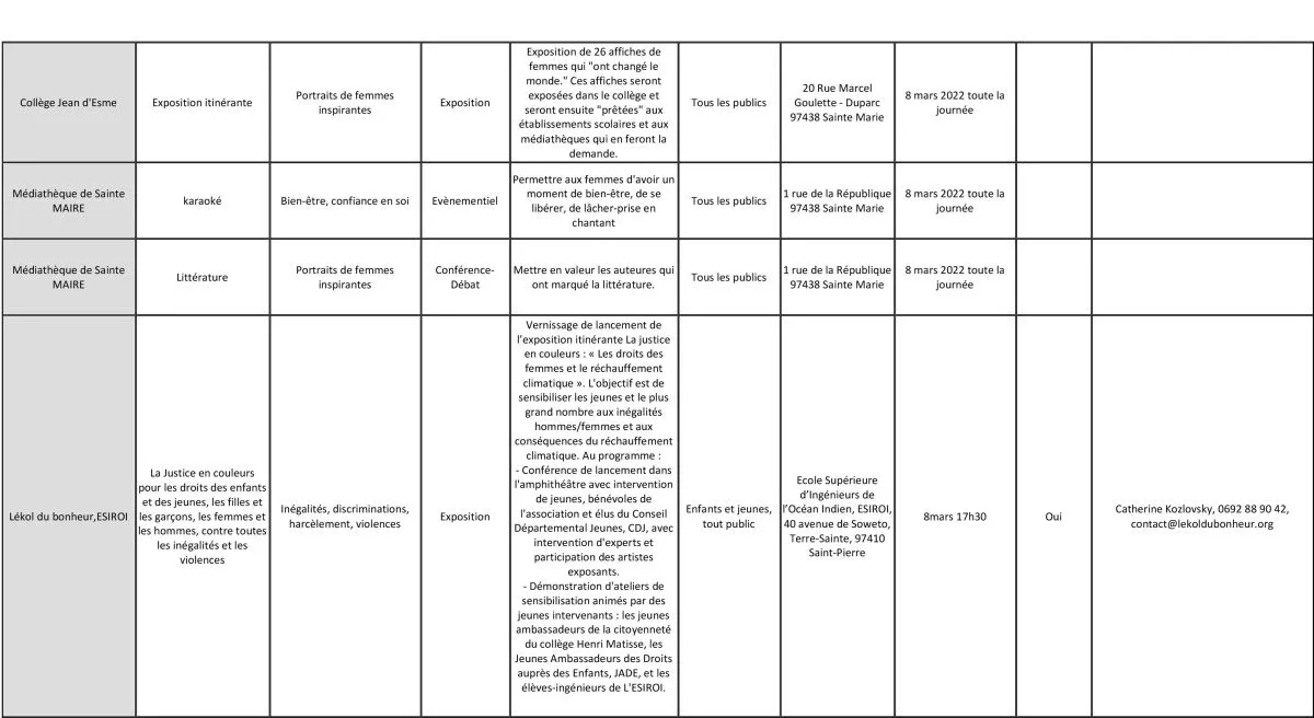 Manifestations du 8 mars 2022 à La Réunion-6 par La Rédaction 8 mars 2022 1 min de lecture Ne manquez pas toute l’actualité de La Réunion ! Abonnez-vous à la newsletter de Free Dom ! Valider Partager Facebook Twitter Pinterest Linkedin Whatsapp Reddit Email La Rédaction Laisser un commentaire Annuler la réponseYour email address will not be published. Enregistrer mon nom, mon e-mail et mon site dans le navigateur pour mon prochain commentaire. Current ye@r * Leave this field empty Articles récents... Jeudi 1ᵉʳ janvier 2026 – Météo, éphéméride et horoscope du jour Mercredi 31 décembre 2025 – Météo, éphéméride et horoscope du jour Hommage à Johnny Hallyday sur Free Dom 2 ce 5 décembre Mardi 30 décembre 2025 – Météo, éphéméride et horoscope du jour Saint-Joseph : découverte de 2337 plants de cannabis, arrestation de 2 individus Point sur le réseau routier départemental, 29 décembre à 16H30 Suicide sur le pont de la Rivière d’Abord : importante mobilisation des secours et des forces de l’ordre Radier submergé à Ilet Furcy : la route de Cilaos fermée à la circulation cette nuit Fortes pluies : appel à la plus grande prudence à Saint-Paul Saint-Gilles-les-Bains : une route impraticable, les riverains montent au créneau (VIDEOS)