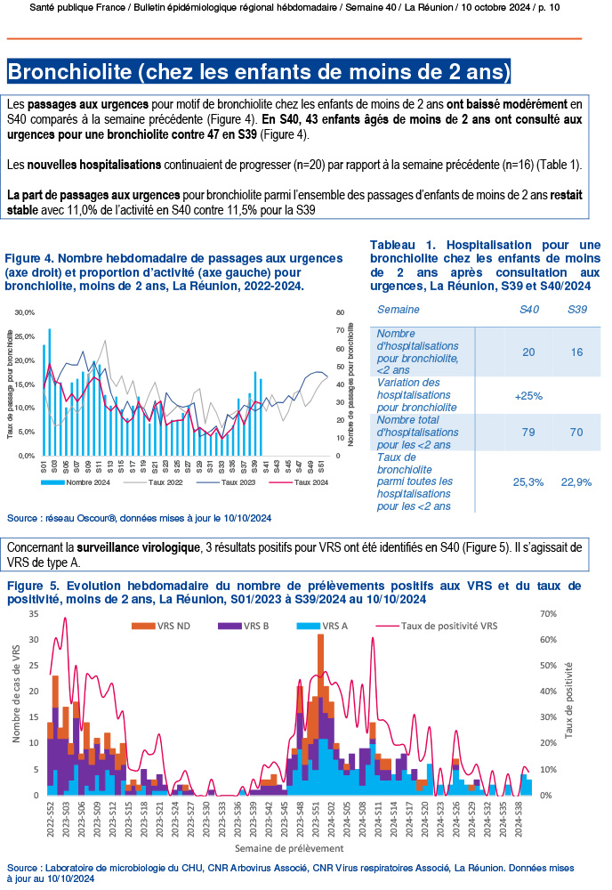 - Les hospitalisations pour un motif de bronchiolite chez les moins de deux ans continuent de progresser (+25%).