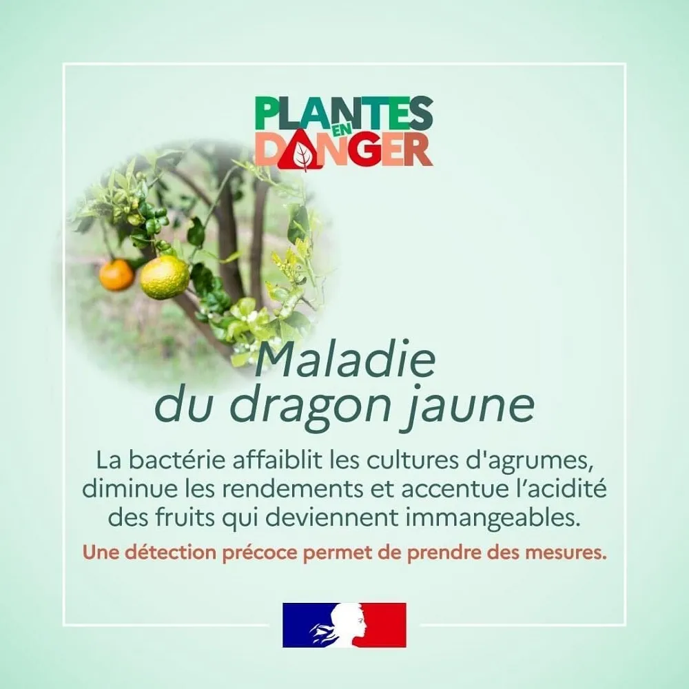 Touchant principalement les agrumes, la maladie du dragon jaune est provoquée par une bactérie propagée par des insectes. Les symptômes incluent un jaunissement des feuilles et un déclin général de l’arbre, pouvant entraîner des pertes considérables dans l’industrie des agrumes.