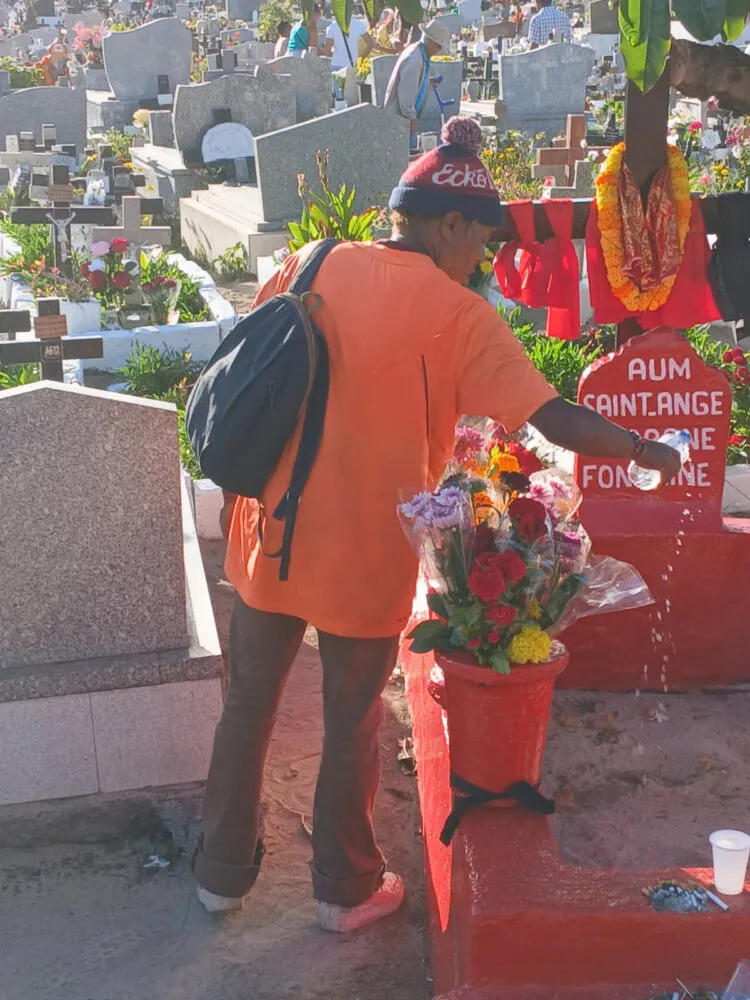 Chaque 1er novembre, tandis que des milliers de familles fleurissent les tombes de leurs proches pour la Toussaint, un autre rite attire l’attention dans le cimetière communal de Saint-Pierre : la tombe dite de Sitarane — peinte en rouge et entourée d’offrandes — continue de recevoir visiteurs et présents, entre curiosité touristique, dévotion populaire et pratiques occultes.