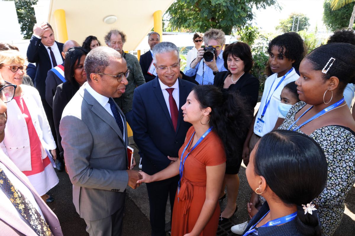 La visite ministérielle s’est poursuivie à l’école Les Baies Roses à Saint-Denis où plusieurs thèmes ont été abordés : l’articulation entre vie scolaire et périscolaire ; l’apprentissage de l’anglais ; les parcours plurilingues dans le contexte créolophone de la Réunion. L’après-midi, Pap Ndiaye a mis le cap vers l’Est, au lycée Marie Curie à Sainte-Anne où le projet de campus des métiers et des qualifications Solidarité et Bien-être lui a été présenté. La première journée de visite s’est achevée avec la présentation d’un plateau technique et la rencontre avec les acteurs à Saint-Benoit.