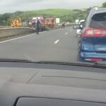 Faites très attention si vous passez par là, des débris sont sur les deux routes. Des embouteillages se sont formés dans les deux sens de circulation.