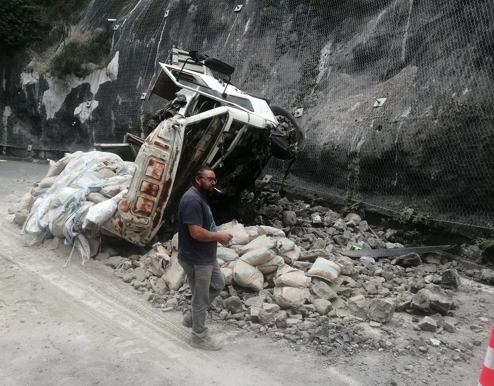 13h27 : rte de Cilaos, un peu plus bas que Cap Noir, sens montant, un camion tombé avec sa remorque 150 mètres en contre bas d’un virage. Fort heureusement, le conducteur n’était pas à bord. Gros dégâts matériels.
