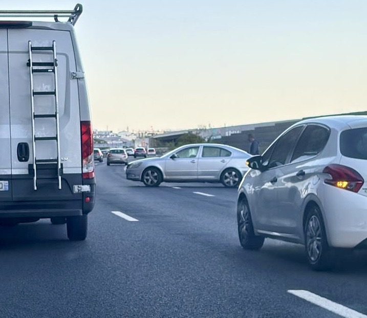 Voiture en travers à la fin de la route du littoral, sur la voie de droite en direction de La Possession, ralentissements dans les deux sens.